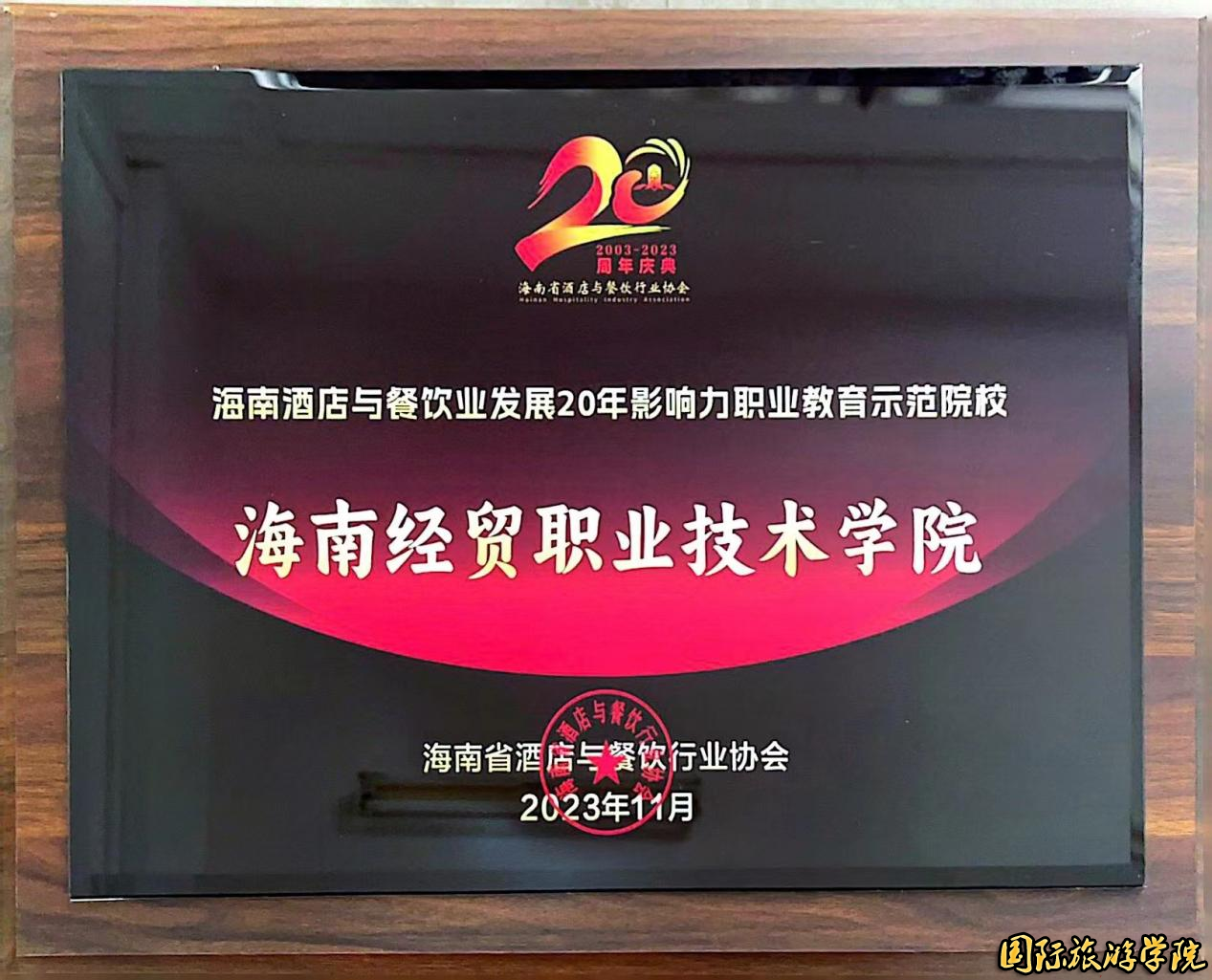 1:BEVITOR伟德荣获“海南酒店与餐饮业发展20年影响力职业教育示范院校