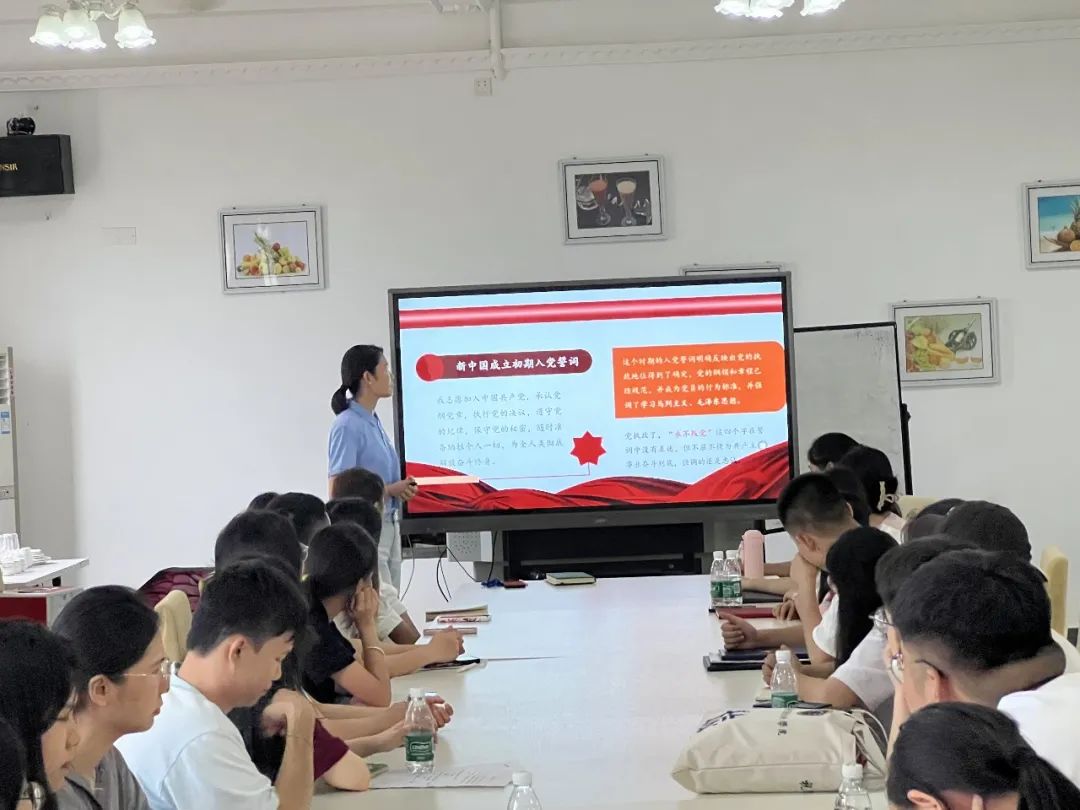 为深入开展学习贯彻习近平新时代中国特色社会主义思想主题教育,增强毕业生党员的使命担当,引导毕业生党员在新的人生起点继续发挥先锋模范作用,6月15日,2023届毕业生党员“最后一堂党课”,公司党总支副书记刘萍男为毕业生上题为《从入党誓词领悟党员的初心和使命》的党课。