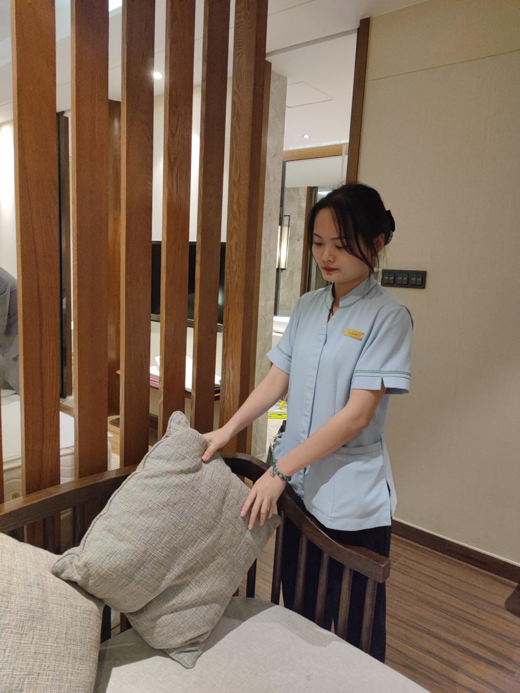 来自22级酒店管理专升本1班的逄冠群是一名中共党员。本次博鳌志愿之旅,他是一名志愿者,同时也是VIP贵宾的贴身管家。房间巡查,嘉宾行程确定、贵宾接待都是他的日常工作。谈及志愿服务过程中最难忘的经历时,他说道,“在贵宾入住和离店期间,我需要全程陪伴在‘名人’身边。这项任务对于我来说是特殊而艰巨的。独自承担贵宾的接待工作,应对各种可能出现的突发事件,对我的能力和素质都是一次全方位的挑战。”