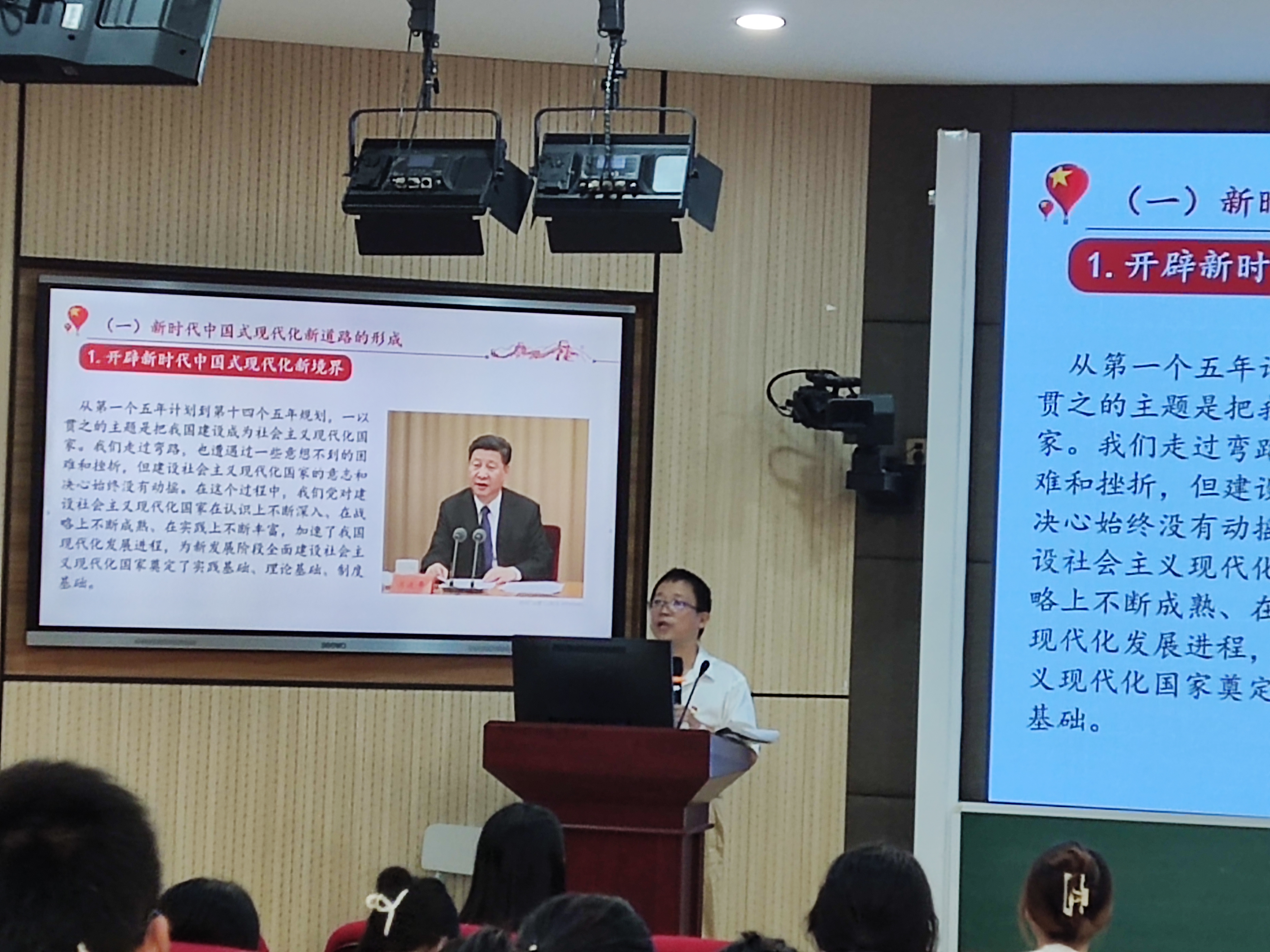 宣讲会上,胡明辉从“坚持走中国式现代化新道路、以中国式现代化全面推进中华民族伟大复兴”两个方面,进行了系统宣讲和阐释。他从鸦片战争结束至新中国成立讲起,述说近现代中国的现代化之梦,从新民主主义革命时期的“工业化”到社会主义革命和建设时期的“四个现代化”再到改革开放时期的“中国式现代化”讲起,述说中国式现代化新道路的艰辛探索。最后他表示,中国成功走出中国式现代化道路,实现中华民族伟大复兴,需要青年一代一棒接着一棒跑下去。当代中国青年必须牢记习近平总书记的寄予殷切嘱托,肩负的历史使命,继续书写中国特色社会主义伟大事业的历史新篇章!