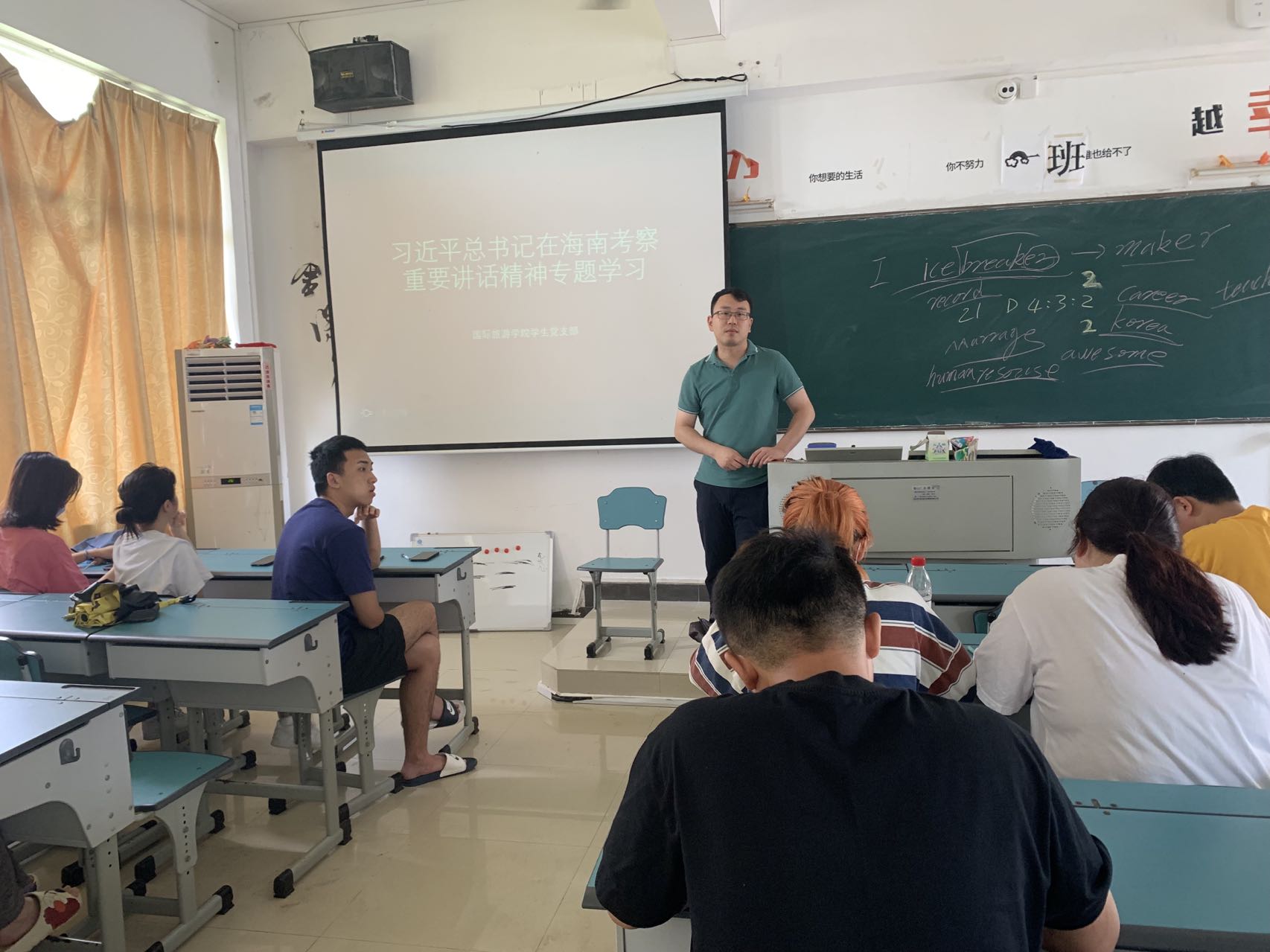 会上由樊靖老师领学学习习近平总书记关于海南工作的系列重要讲话内容。员工党支部书记张强老师总结了讲话中关于青年工作中的重点内容。强调把学习贯彻习近平总书记在海南考察时的重要讲话精神作为当前和今后一个时期的首要政治任务,进一步认识当代青年党员所肩负的历史使命和所承担的重大政治责任。