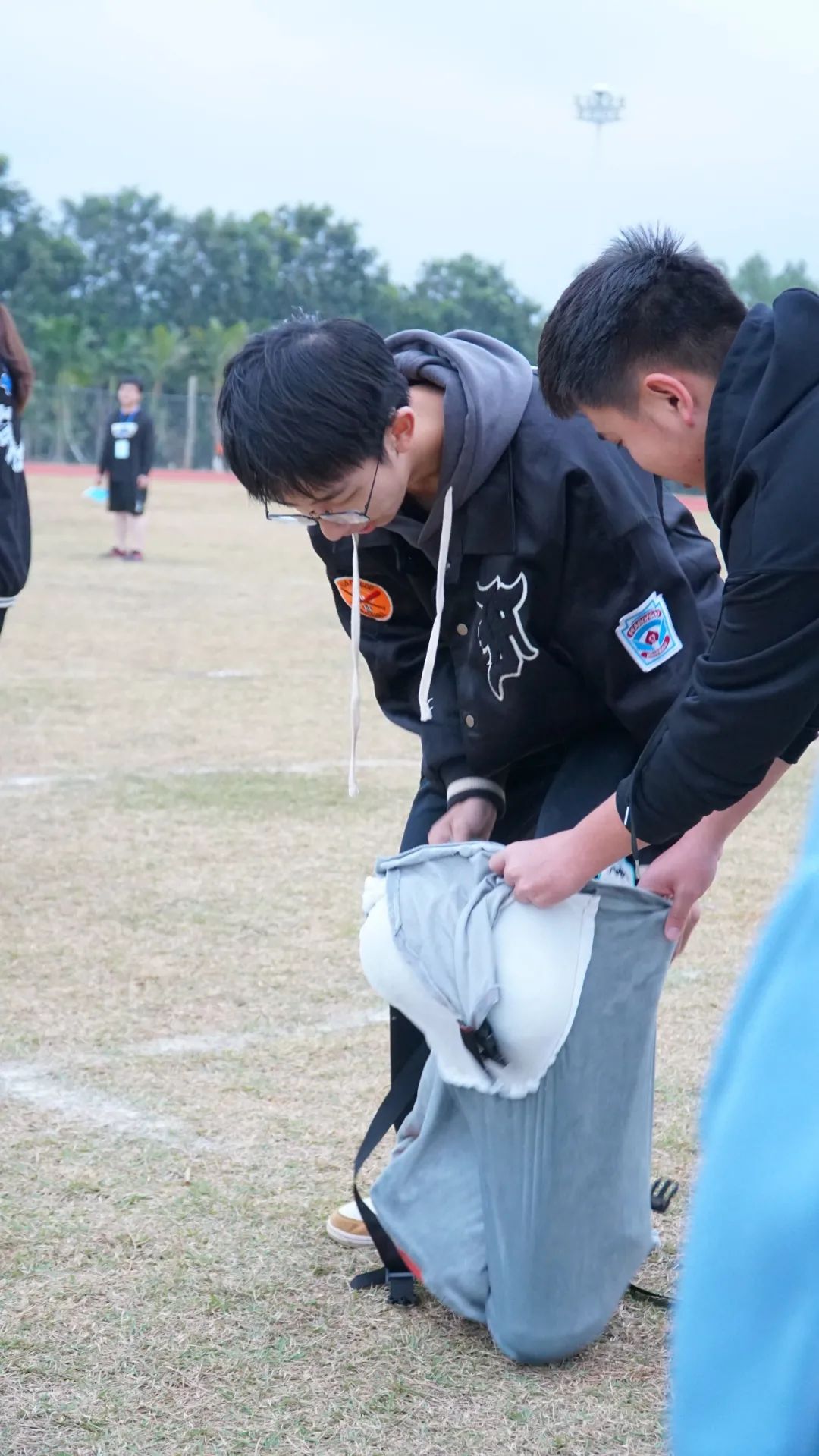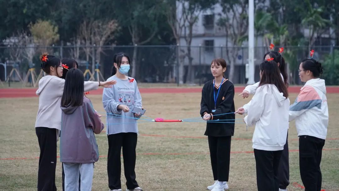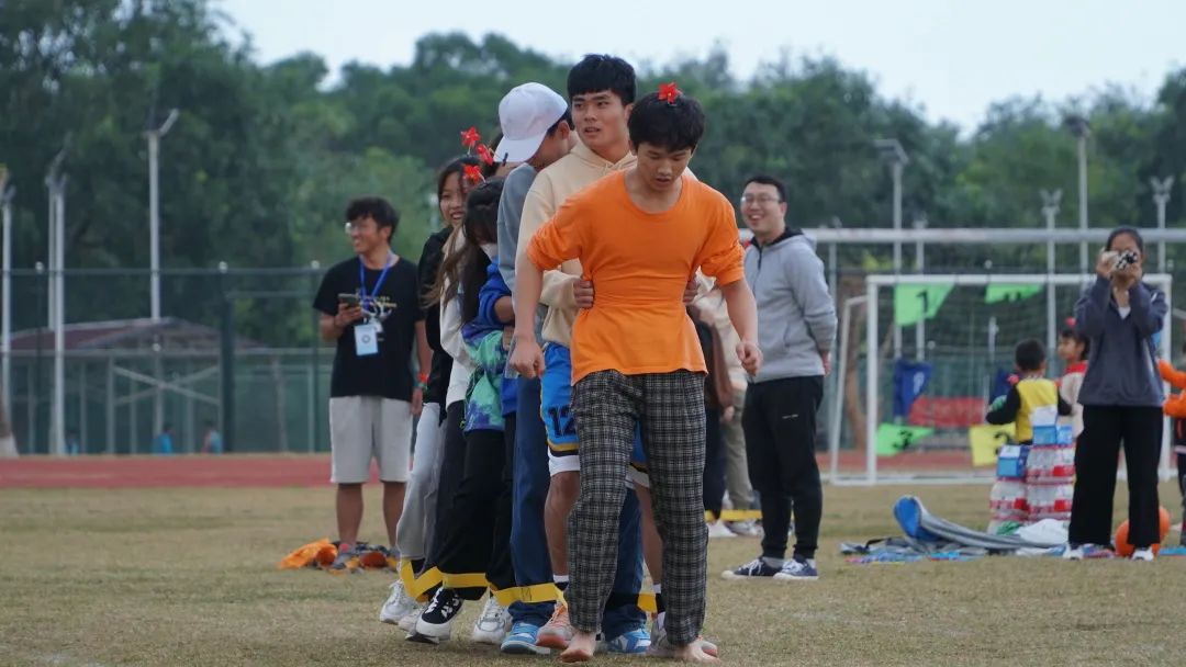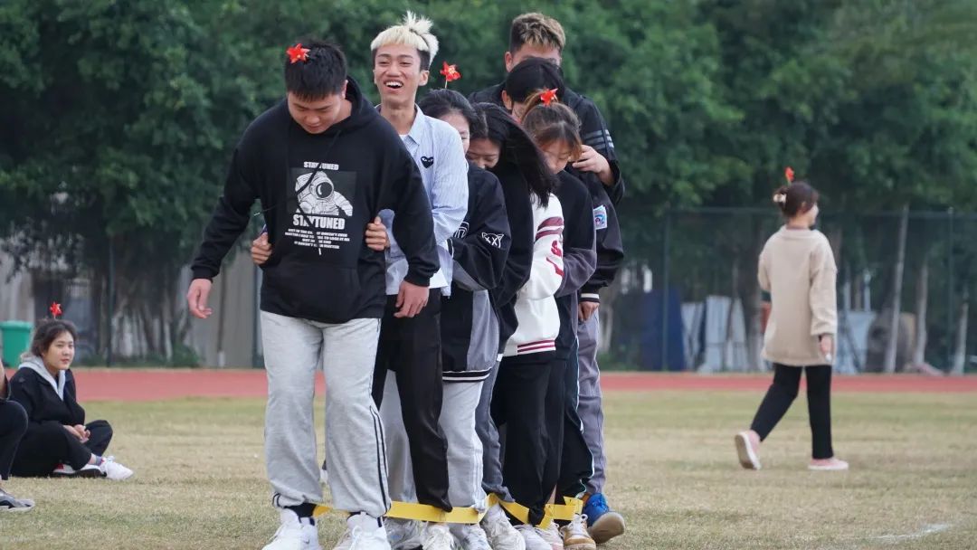 本次趣味竞赛共设四组游戏,“过草地”需要选手们八位一体攻坚克难迈过终点线;“袋鼠跳”环节考验着同学们的协作分工;“齐心协力”运动中,体现的是同学们力量的凝聚;“敌强我弱”则充满激情刺激引爆全场。参赛者需要在游戏前正确回答一道党史题方能前进,随后根据团队游戏及问答表现综合进行排名。