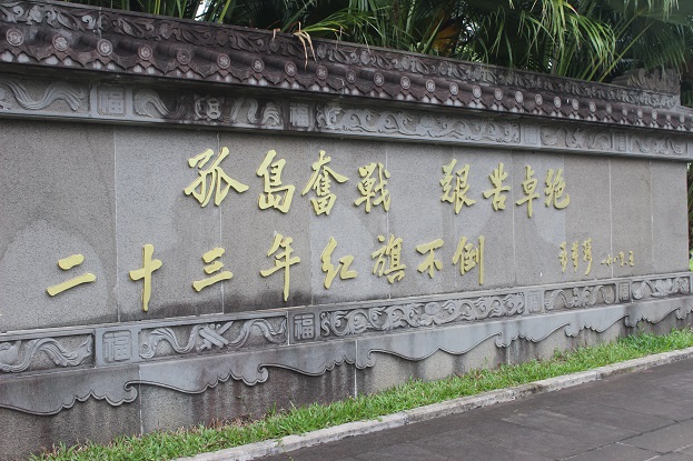 活动的第三项内容是:忆初心。下午13:30到达了位于海口市琼山区的冯白驹故居。在苍翠棕榈的掩映下,“孤岛奋战,艰苦卓绝,二十三年红旗不倒”十六个字映入眼帘。