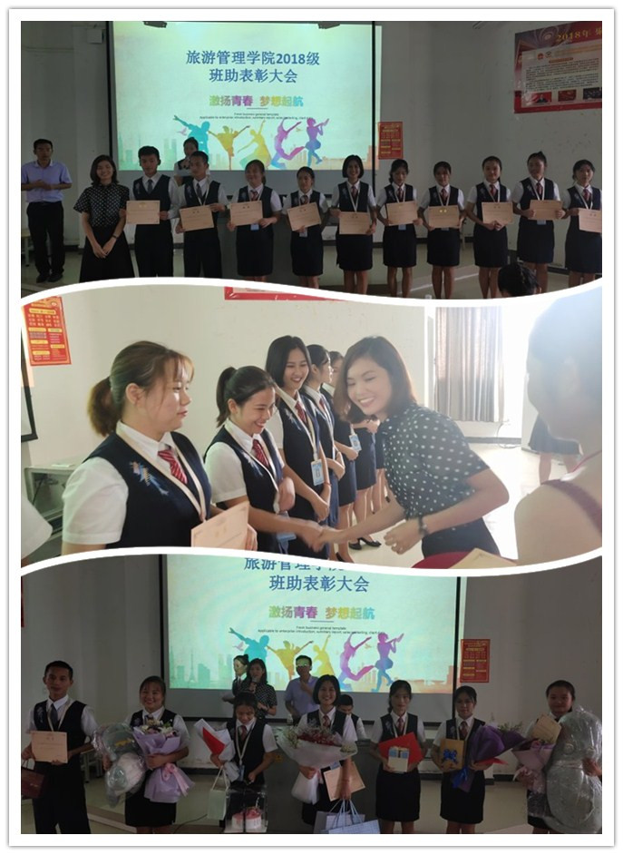 会议第二项班助表彰大会。班级助理是一支富有理想和责任的员工自治管理队伍,用青春、热情架起联系员工与老师之间的桥梁。为表彰和感谢优秀班助理的辛勤付出,辅导员樊靖老师对班助进行了一一介绍,刘萍男老师为他们颁发证书。同时全体同学也将掌声送给了在幕后一直默默付出的团学干部。各班员工代表也纷纷上台为自己的班助们送上别出心裁的礼物,最后员工代表也送上了感人肺腑的致谢词。这表明了我们旅游管理公司是一个和谐共处的大家庭!
