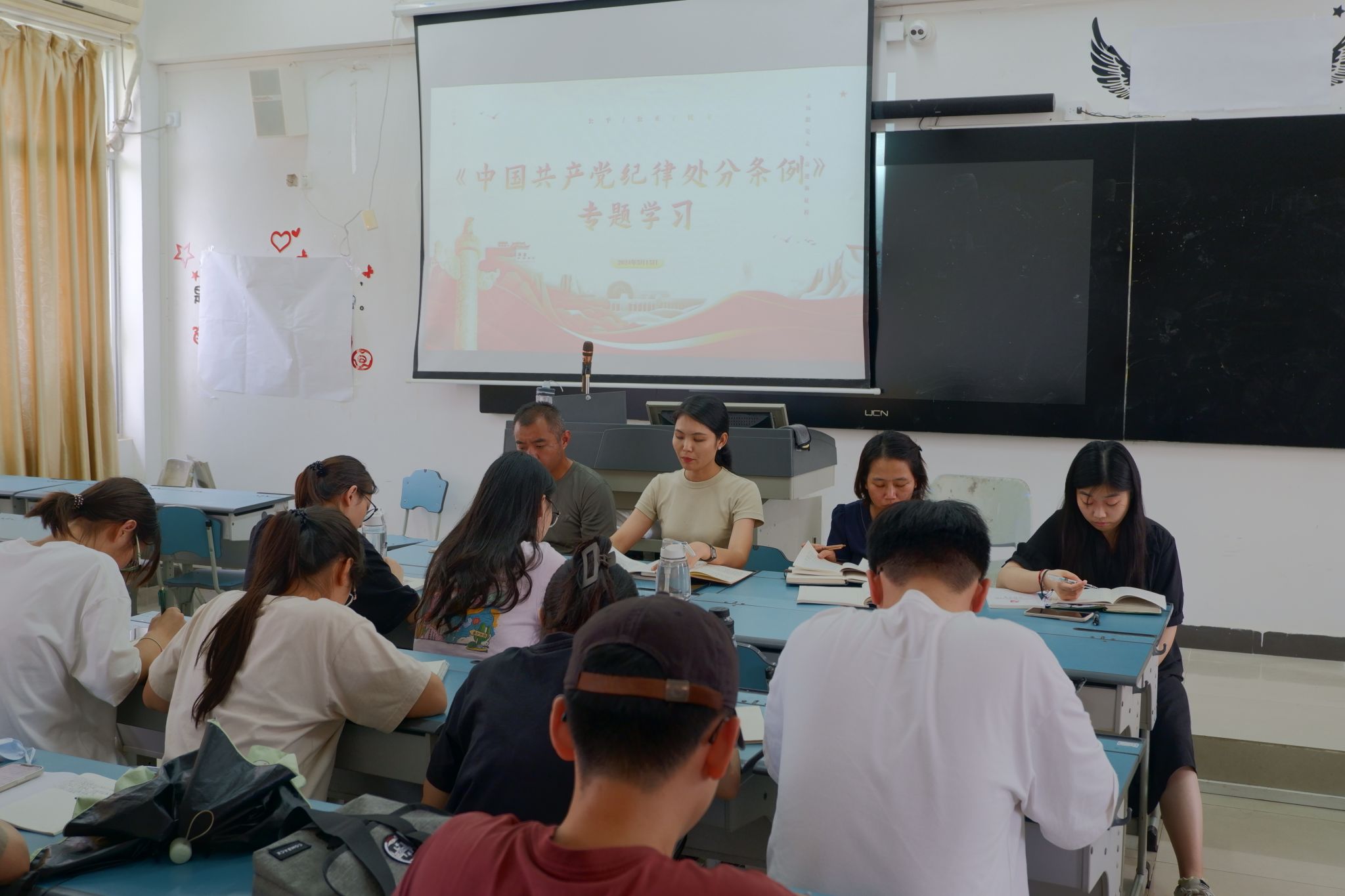 为深化党纪学习教育,5月15日,bevitor伟德员工党支部在2-504召开党纪学习教育专题学习会,员工支部全体教师和在校员工党员参会。党总支副书记刘萍男主持会议。