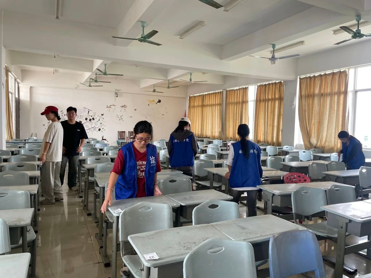 志愿者们穿梭在二教的5楼及6楼间,他们将桌椅摆放整齐,将党员活动室各类物进行了仔细整理和摆放,还认真擦拭桌面,不放过任何一个小细节。经过一番努力,二十余间教室和党员活动室焕然一新。党员们以实际行动践行服务群众、奉献社会的责任,彰显了党员的先锋模范作用,提升了党组织凝聚力。