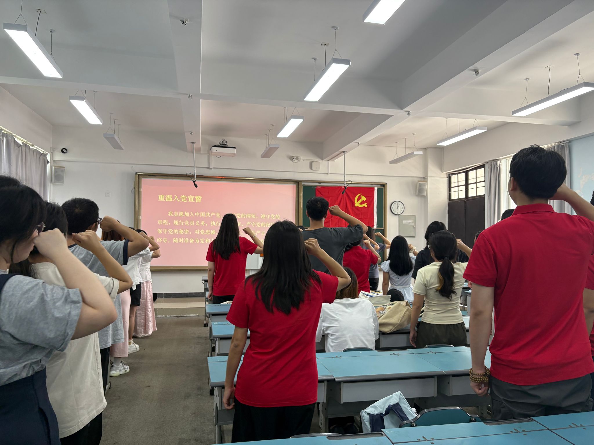 随后,由支部书记李越领誓,全体党员重温了入党誓词,进一步坚定了理想信念和党性意识,激励大家牢记入党誓言,在新时代新征程中永葆赤子之心,践行使命担当。