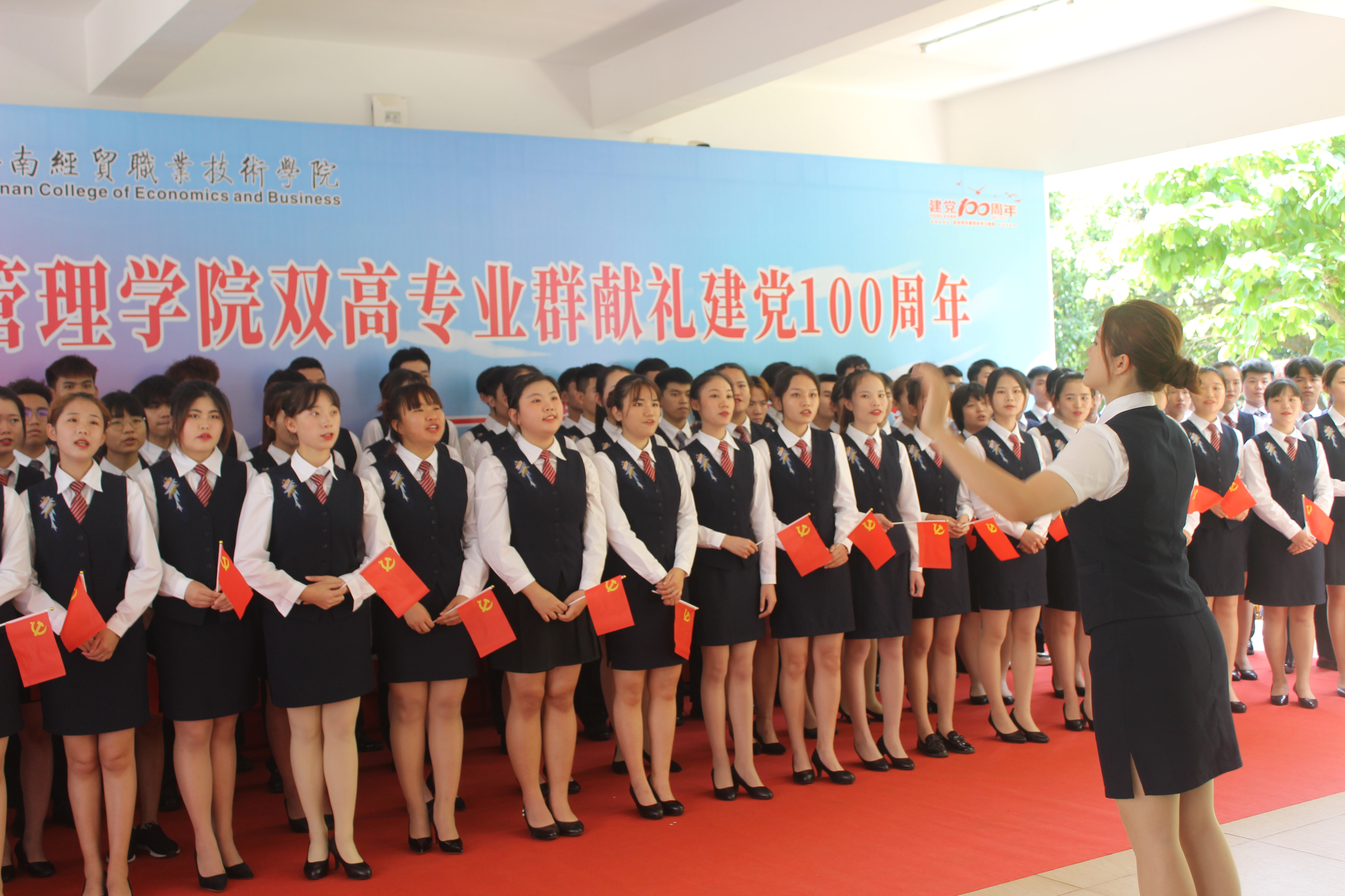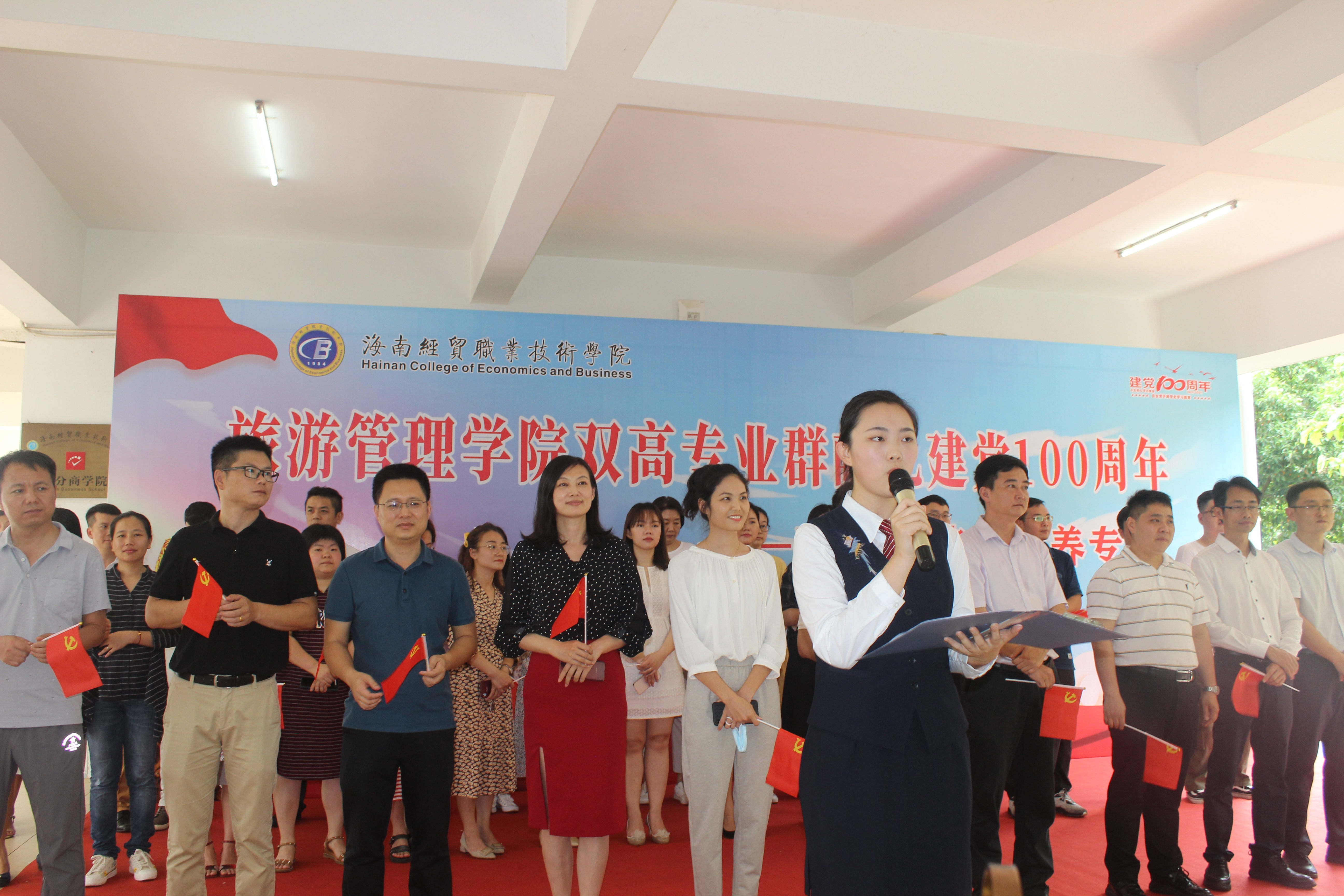 为庆祝中国共产党建党100周年,旅游管理公司于4月23日中午在二栋教学楼架空层,隆重举办旅游管理公司双高专业群烹饪工艺与营养专业献礼建党100周年活动。公司经理吉家文、党总支书记符胜、副经理范洪军、党总支副书记刘萍男以及全体教职工出席本次活动。