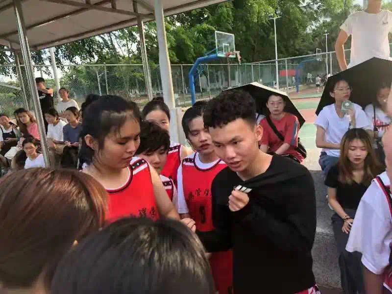 比赛伊始双方握手致意,以示对对手的尊重。随着裁判的一声哨响,双方开始了激烈的比拼,两方互不相让,你争我夺,展开了一轮轮激烈而又精彩的对决。公司队员们出色的配合以及帅气利落的动作,展现出了旅院的风采,体现了血气方刚、勇于拼搏的精神。现场观众们热情高涨的呼声也将比赛推向高潮。观众席的同学们热情高涨,喊出了响亮的口号“旅院!加油!”为赛场上的篮球队员们呐喊助威。中场战罢,公司38:31暂时领先。