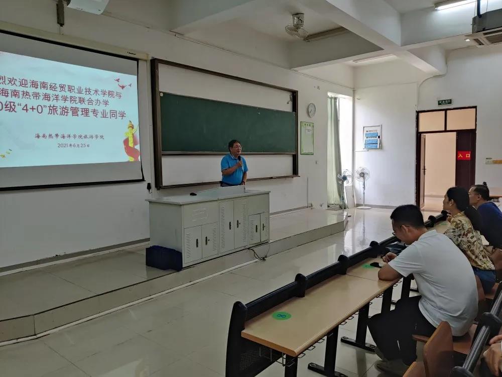 海南热带海洋公司旅游公司副经理陈德广、学工办主任罗丕任对海经贸一行的到来表示热烈欢迎,并进行亲切交流。双方就“4+0”旅游管理联合办学项目性质、招生规模、培养质量进行深度交流。陈德广副经理认为公司“4+0”旅游管理本科专业建设基础扎实、特色鲜明,与热海院本科教育可实现优势互补,强强联合。刘萍男副书记对课程衔接、员工交流、实习就业等方面对项目未来深入持续的发展提出了看法,并鼓励员工常回家看看。