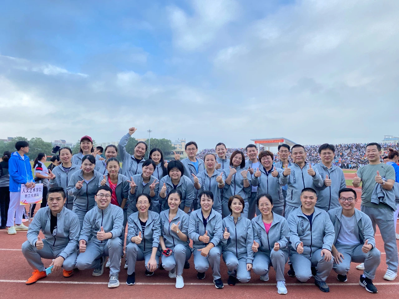 本次运动会公司啦啦操在全校公司中获得了第一名的佳绩,员工组团体总分第四名,教工团体总分第五名以及获得入场式优秀奖和体育道德风尚奖。在此,让我们以最热烈的掌声对他们表示最诚挚的祝贺!