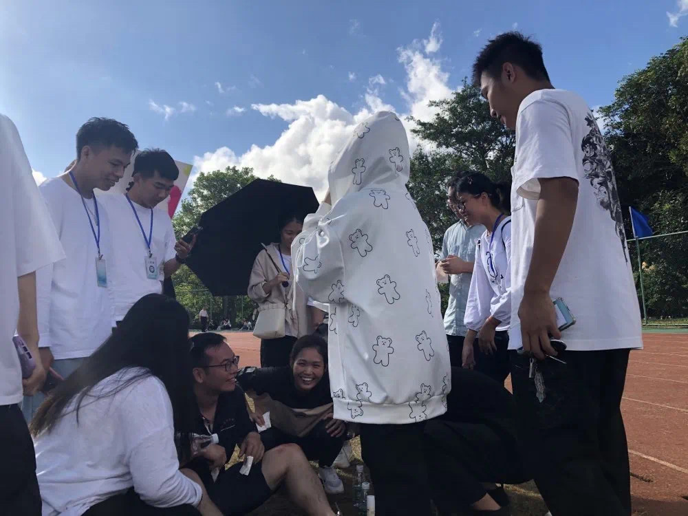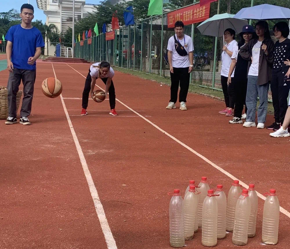 欢快的氛围是趣味组的特征。在这里,没有严肃的竞争,只有享受比赛的选手们。一记射门, 一个投球,一起运球前进,一起并肩同行。每一处都洋溢着老师同学们的欢声笑语。
