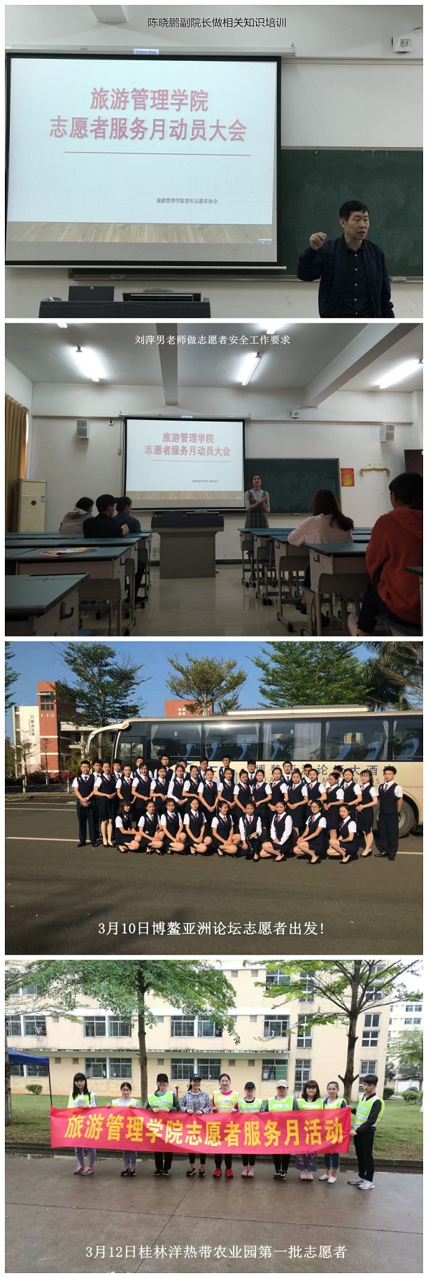 3月12日,公司又启动了“桂林洋热带农业园志愿活动”项目。整个志愿服务项目持续时间为一个学期,每周周一至周五上午公司都会从报名的志愿者中挑选10名志愿者参加活动。志愿者的主要工作内容结合了专业特点,在农业园中为参观的人员做景区引导和讲解。