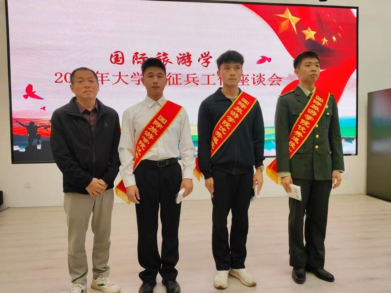 为深入贯彻国家关于征兵工作的号召,推广国家征兵政策,鼓励广大青年学子积极响应祖国召唤、投身军旅。2024年12月26日下午,公司召开2025年征兵工作宣讲会。党总支书记孙金、退役复学员工代表周子洋、戴宝刚、刘正龙及全体辅导员出席会议。