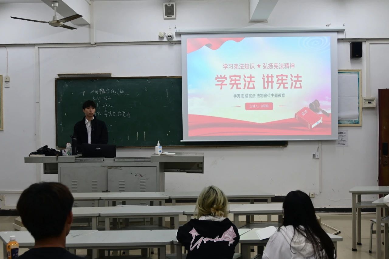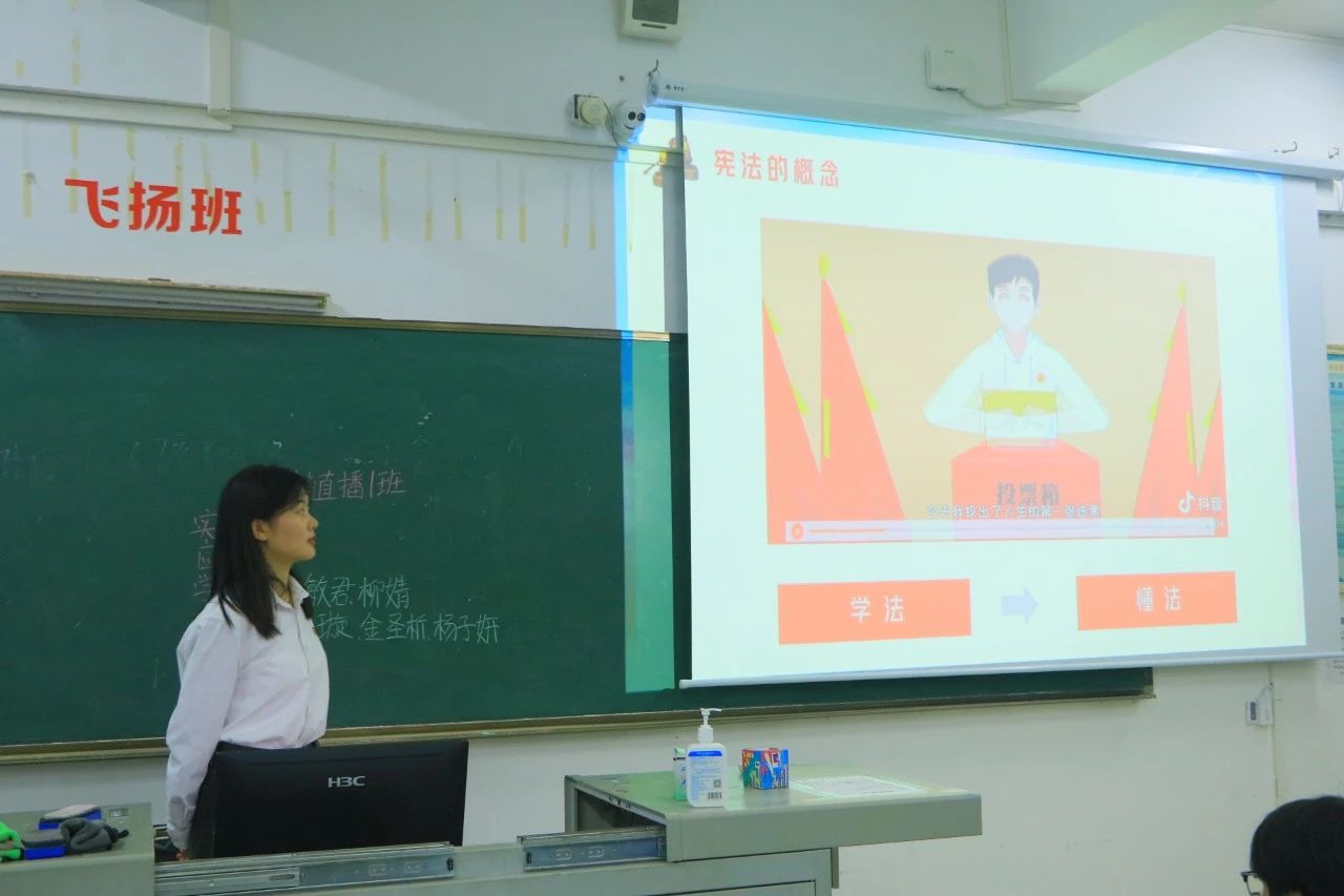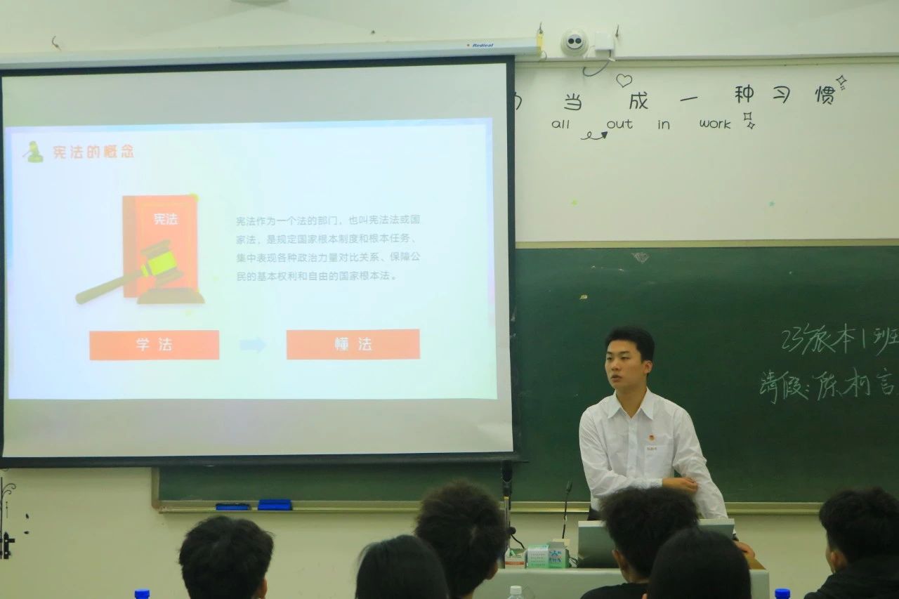 宝展鹏现场带同学们合唱了《宪法伴我们成长》,一同在悠扬的歌声中感受宪法的庄严和力量。王金叶和邱天菊在各个班级发放宪法知识宣传手册,用通俗易懂的方式向同学们讲解相关的法律法规知识,让大家更全面、深入地了解宪法对公民权利义务的相关规定。