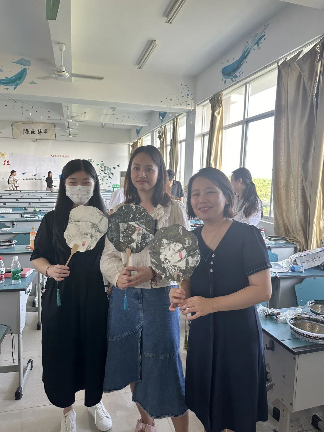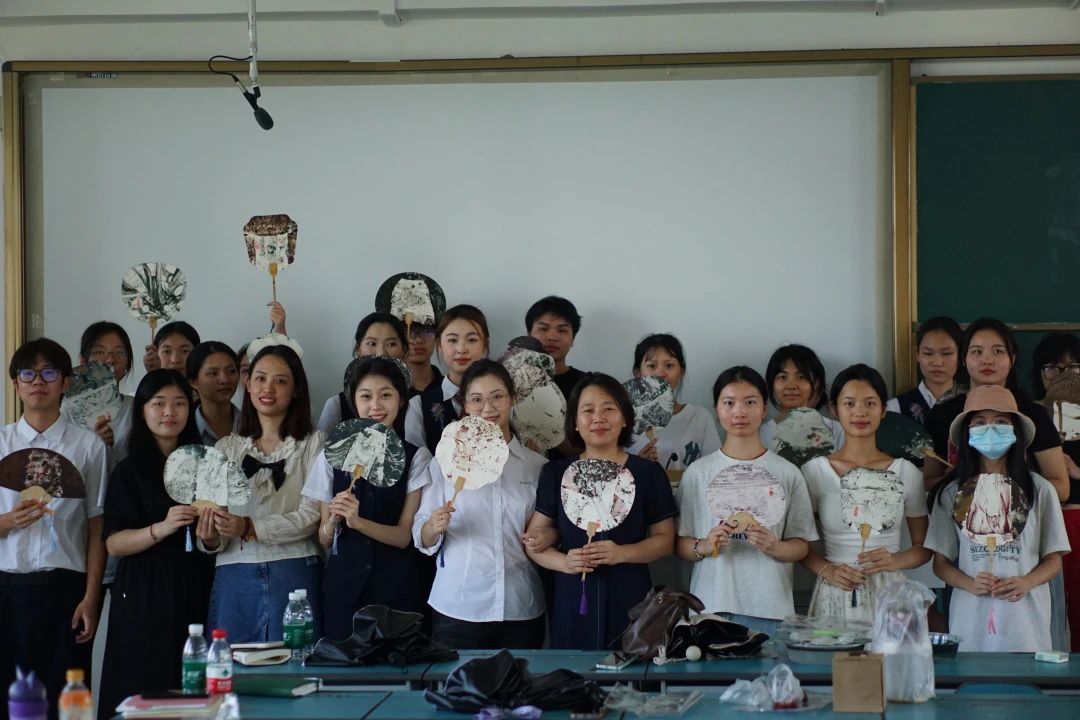 同学们对自己扇面的纹样构图进行了精心设计,各具特色的水波纹样让每一把扇子都独一无二,在经过细心的打磨和点缀之后,一幅幅精美的漆扇作品逐渐呈现,为之惊艳!同学们都非常开心在这次活动里收获了一份专属于自己的礼物。