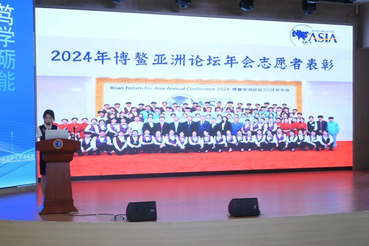 会上,樊靖老师对志愿服务活动进行了总结,肯定了志愿者的贡献和成绩,并鼓励大家继续投身于志愿服务。陈凤灵嫣等4名志愿者代表分享了个人感悟,陈凤灵嫣说到:“回顾这段志愿者活动的历程,我深感自豪。在这个过程中,我们不仅为博鳌亚洲论坛的顺利举办贡献了力量,还收获了宝贵的人生经验和成长。同时我也意识到自己在沟通协作等方面还有诸多不足,在未来我会以更加积极昂扬的姿态投入到志愿服务中去。”