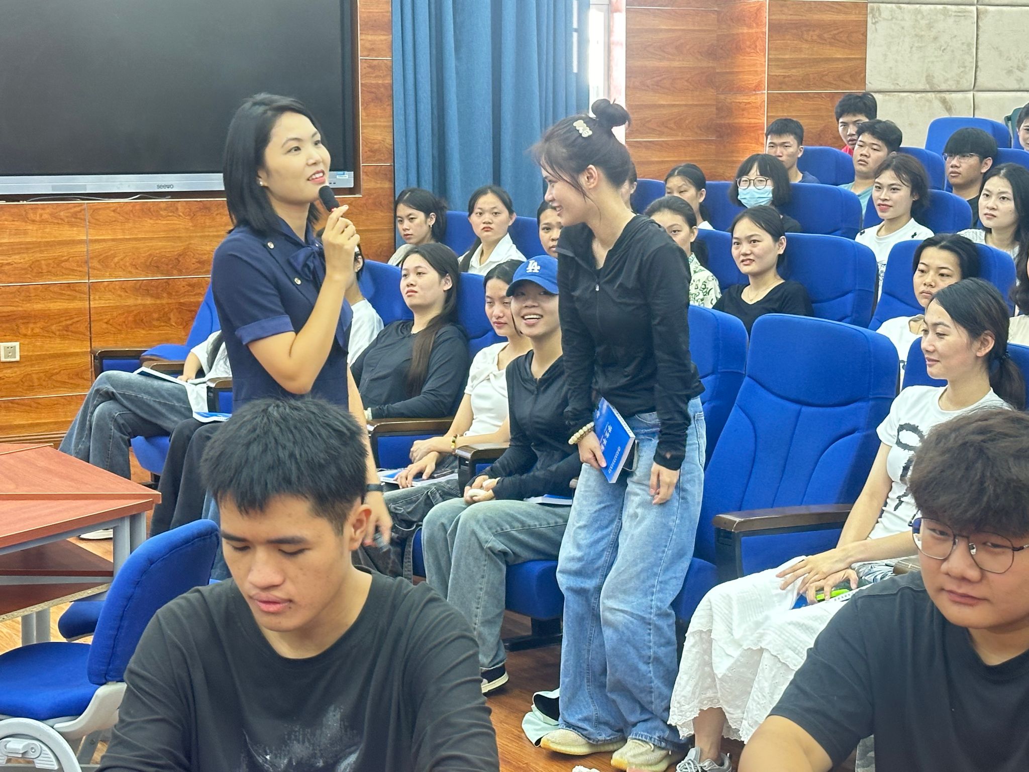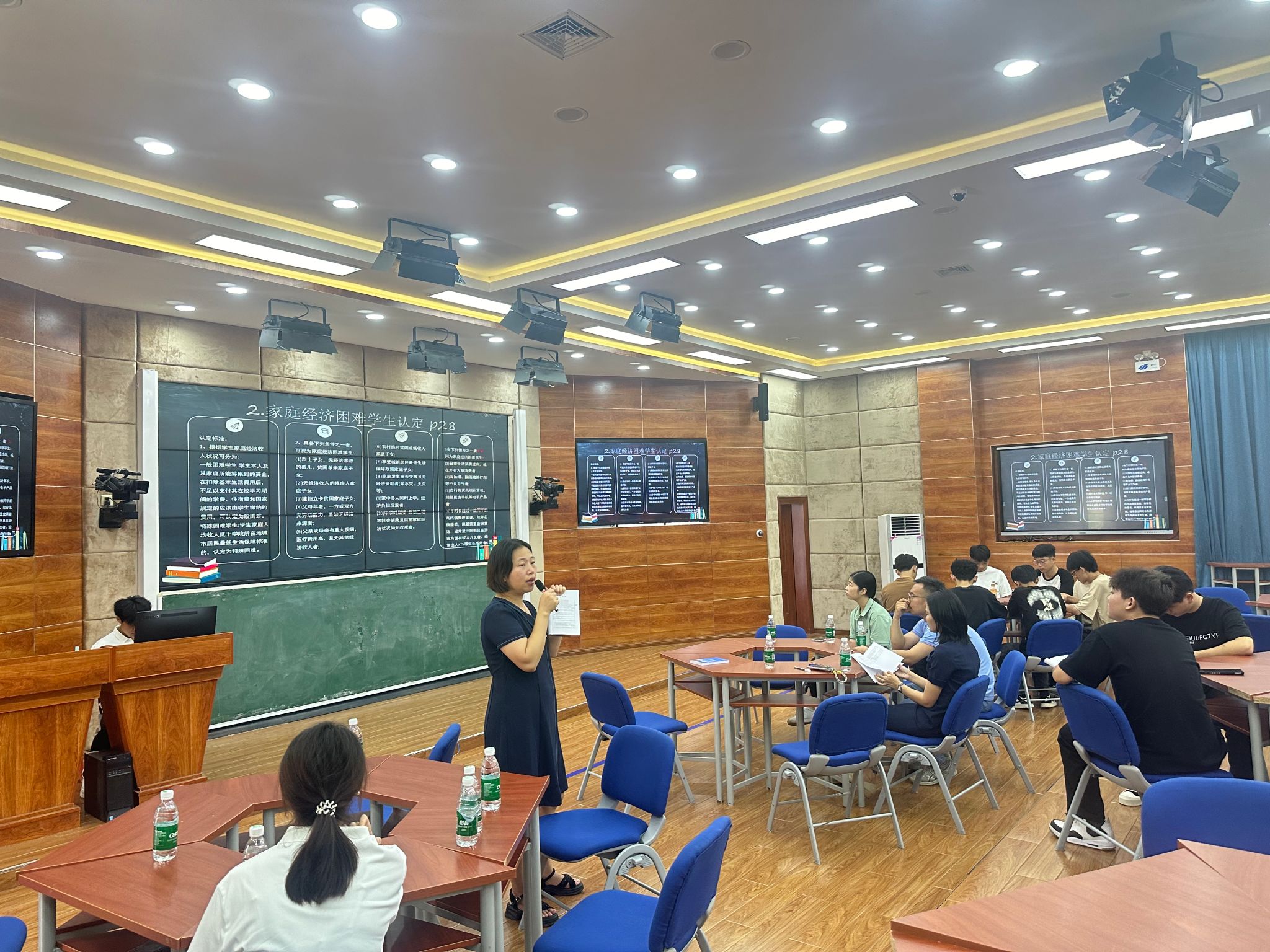 随后,学工办主任符珍对各类奖助学金的评选标准和申请流程进行了详细介绍,为新生们提供了全面而实用的指导;辅导员樊靖对老员工征兵入伍工作逐一进行解答,鼓励老员工投身于国家和国防建设主战场,贡献青春力量。