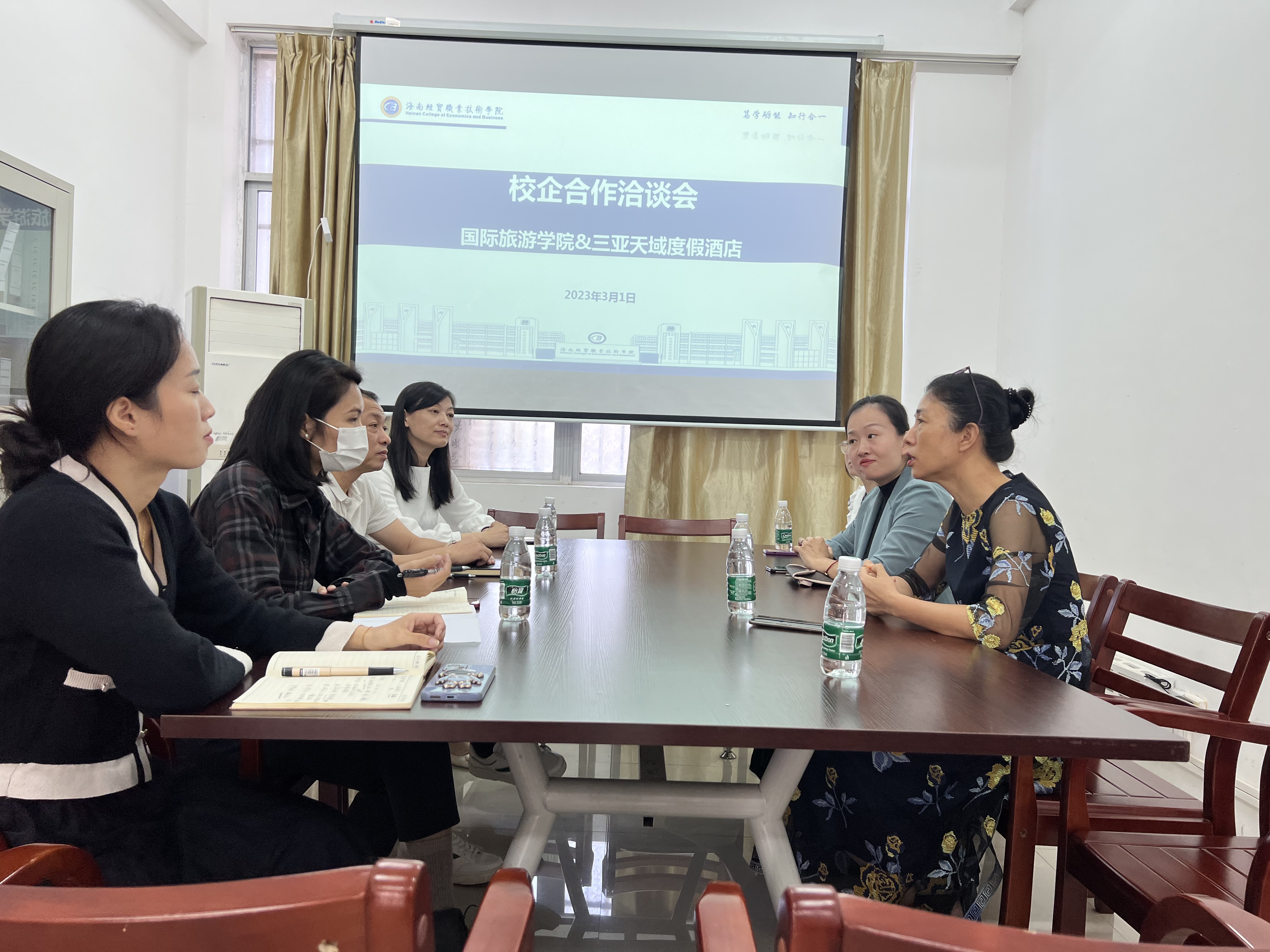2023年3月3日下午,三亚海棠湾JW万豪&喜来登人力资源部总监翁宝珠、三亚海棠湾JW万豪&喜来登人力资源经理陈洁玲来访公司。党总支副书记刘萍男、学工办主任符珍热情接待。深入交流沟通关于坚持“以人为本,面向市场,服务经济”的职业教育理念,探索校企多维合作,全力促进毕业生顺利就业、尽早就业等话题。