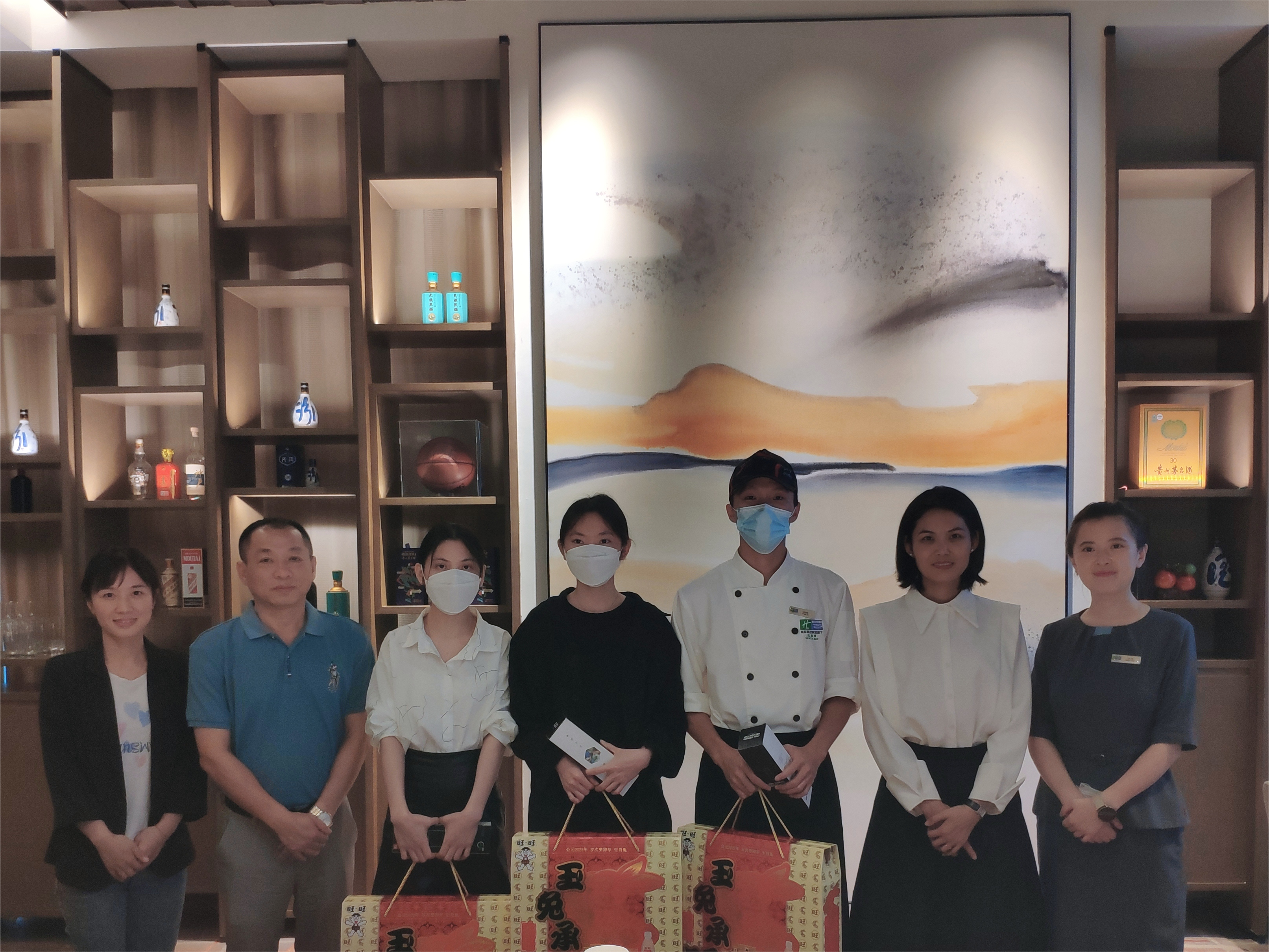 (与三亚海棠湾威斯汀民生酒店企业代表和实习生合影)