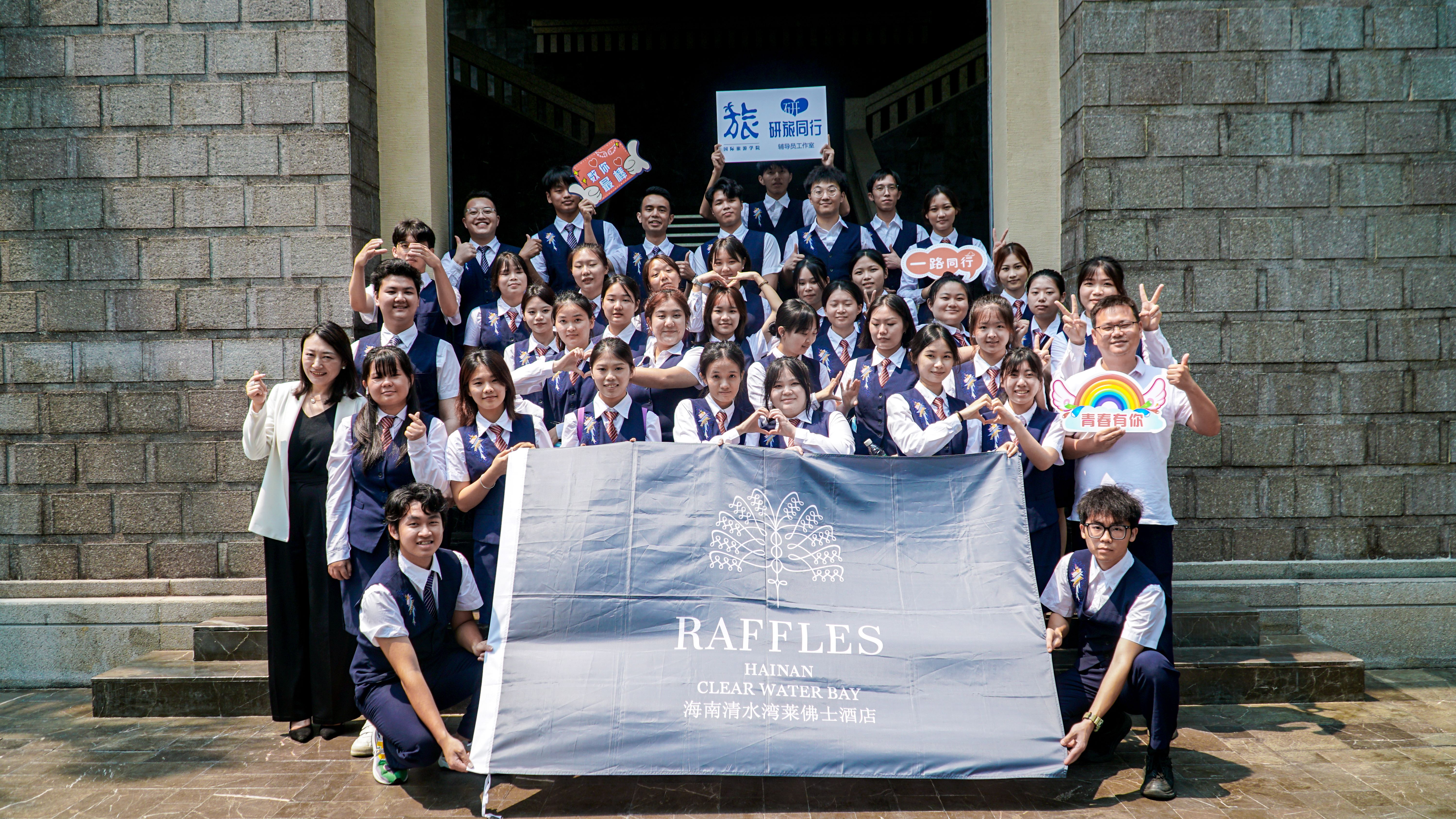 本着这一观点,公司于2023年4月1日举办了首期“研学探岗一日行”活动。活动由38名各专业的员工代表组成,他们怀揣所有2023届即将踏上实习岗位同学的梦想,开启了为期一天的陵水清水湾莱佛士度假酒店探岗研学活动,辅导员张一兵带队。