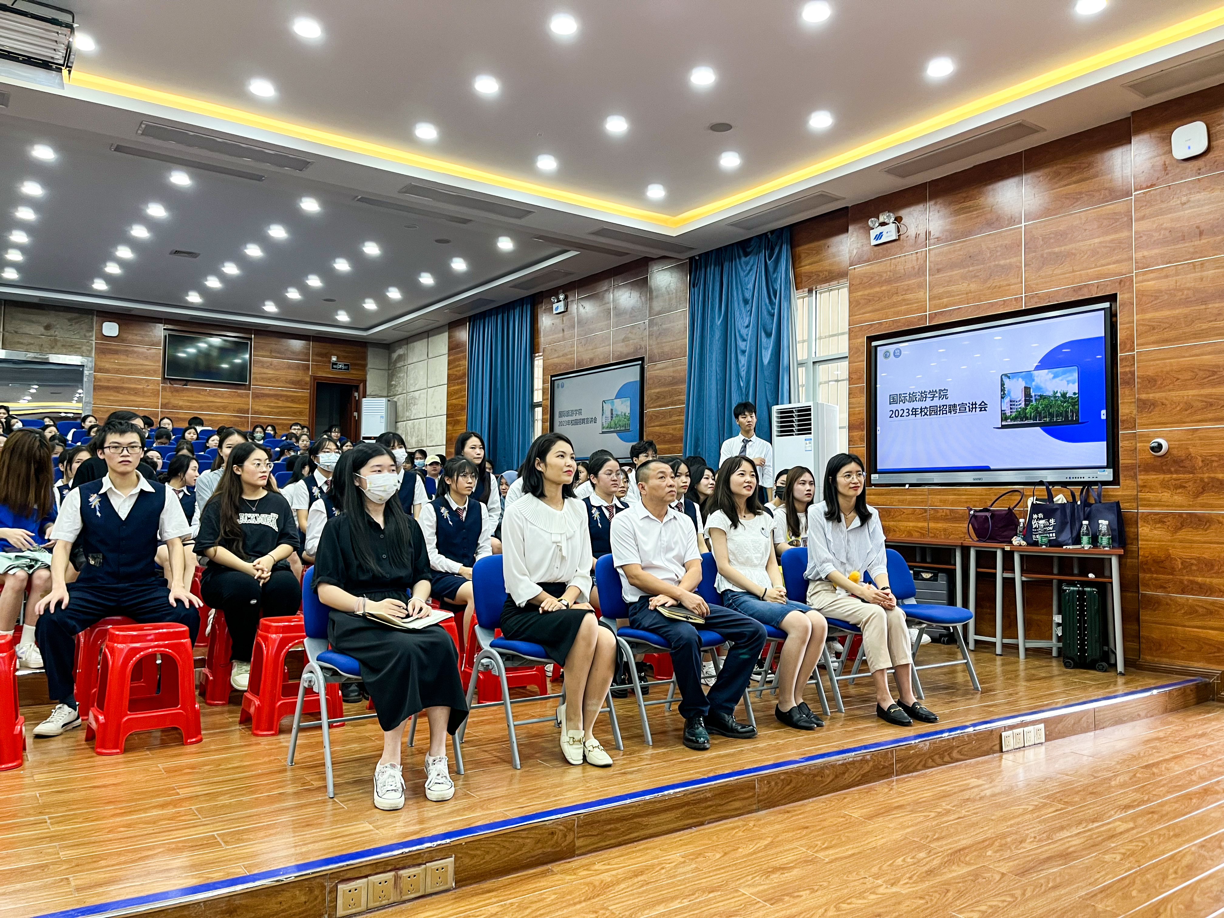 为全面推进bevitor伟德实习就业工作,切实提升员工实习就业质量,帮助员工办实事。4月18日下午,bevitor伟德举办了2023年首场实习就业校园招聘宣讲会。本次宣讲会共邀请到上海迪斯尼乐园、澳门新八佰伴、三亚海棠湾仁恒皇冠假日度假酒店、广州长隆度假区等4家企业。国际旅游公司党总支书记孙金、副书记刘萍男出席宣讲会,辅导员樊靖、张一兵、张璐璐以及毕业班员工共计260余人到场参会。宣讲会由樊靖主持。