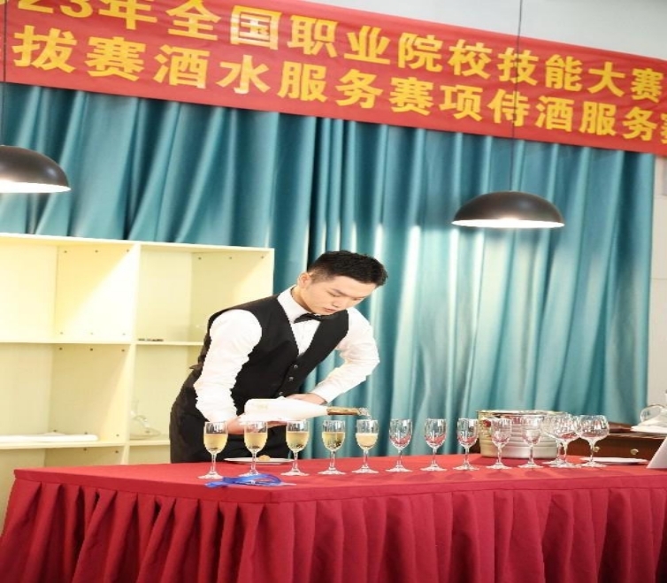 “酒水服务”赛项是教育部职业院校技能大赛新增赛项,该赛项设置起泡酒、老酒侍酒服务、鸡尾酒调制等内容,是融合1+X葡萄酒推介与侍酒服务职业技能等级证书的“赛证”融合新赛项。赛项标准对标于国际相关赛事,以“借鉴国际标准、突出中国特色、贴近生产实际、体现工作过程”为宗旨。这是酒店管理与数字化运营相关专业员工展示专业素养和服务能力的大舞台。赛事目的是鼓励青年学子投身高端餐饮及酒水流通领域,发扬侍酒、调酒服务的独特魅力,为侍酒师、调酒师行业持续输出专业人才提供竞技平台。