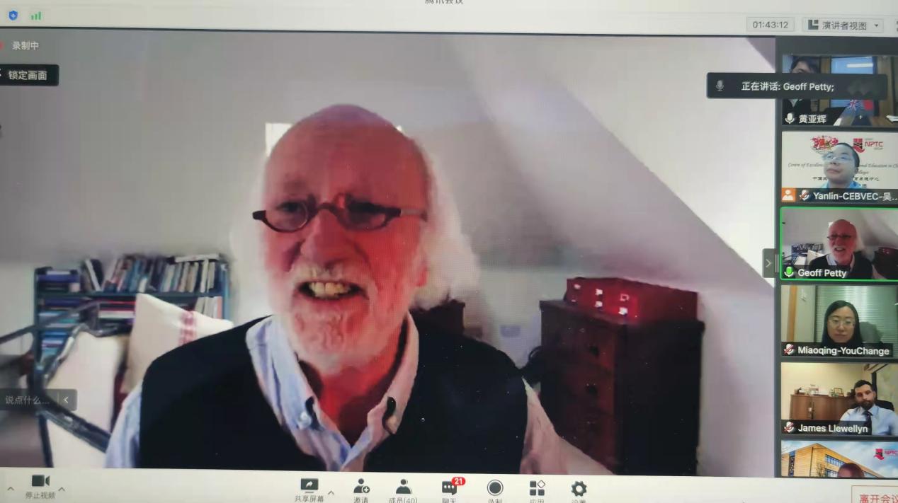 同时,该项目还增加了英国著名教育家杰夫.佩蒂(Geoff Petty)讲授的《循证教学法》系列网络视频课程。杰夫.佩蒂(Geoff Petty)是世界领先的教师培训专家,他的著作《今日教学》(Teaching Today))和《如何教的更好》(How to Teach Before)对英国的教学方法产生了广泛深远地影响,该课程使我们有机会深入了解英国的教学方法,开阔我们的教学视野,通过边学边做,将这些方法运用到我们的课堂实践中,从而提高我们教师的教学水平。