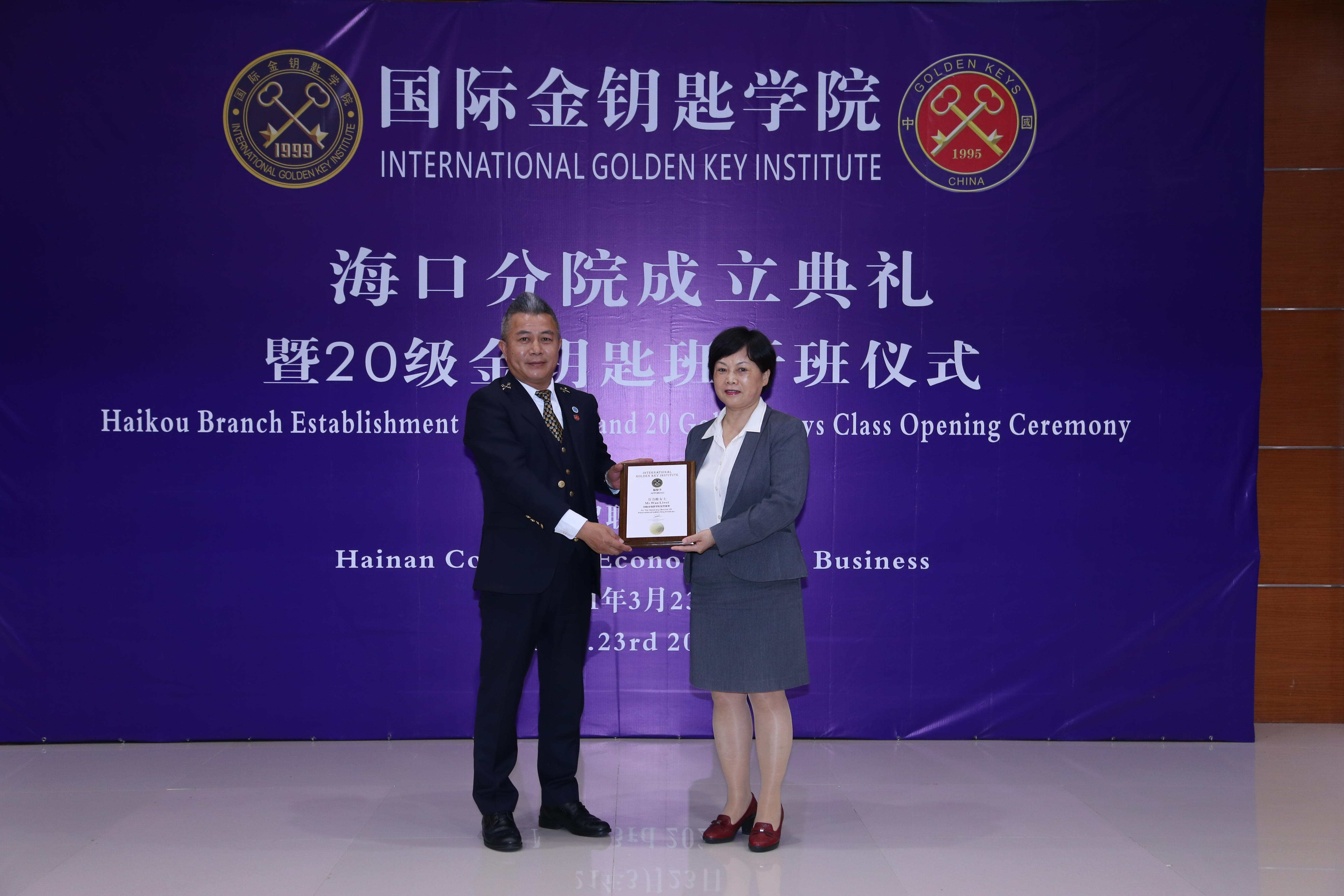 国际金钥匙公司海口分院授予公司副董事长万力维教授为国际金钥匙公司荣誉董事