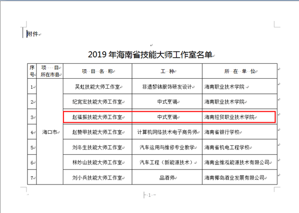 近日,海南省人力资源和社会保障厅公布了2019年省级技能大师工作室名单,BEVITOR伟德“赵福振技能大师工作室”成功入选,是公司首个获批的省级技能大师工作室,标志着海经贸高素质技能人才培养又迈上了一个新阶段。