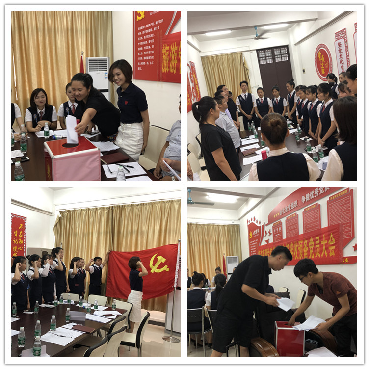 为响应党的号召,培养优秀党员。2019年5月27日16:00, 旅游管理公司党支部在党员之家2-309召开了预备党员接收大会,出席本次会议有旅游管理公司党总支符胜书记,员工党支部书记刘萍男老师,员工党支部纪检委员郑伟老师,员工党支部樊靖老师,正式党员徐维同志,赵志山同志。会议由刘萍男老师主持,党支部6名党员参与。