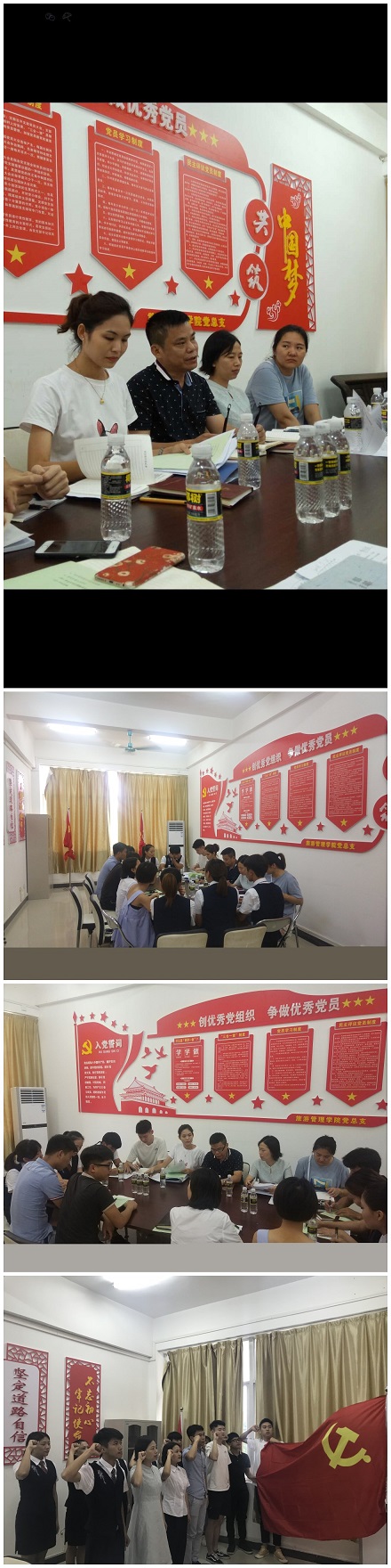 会议接着讨论潘家富、陈观辉、陈冰冰、李知蔚、何月阳、覃媛、莫筱盈、唐友英8名发展对象的入党问题。会上,潘家富等8名同志先后宣读了入党志愿向支部大会汇报了个人基本情况、入党动机、本人履历及向党组织说明的其它问题;入党介绍人对培养过程和申请人的表现进行介绍评价,并对其能否入党表明意见;支委会报告了对其亲属及主要社会关系的政审和公示情况;大会充分发扬民主,全体党员本着认真负责的态度积极发表意见。表决采取无记名投票方式进行,当场形成并通过了接收8名同志为预备党员的支部大会决议。