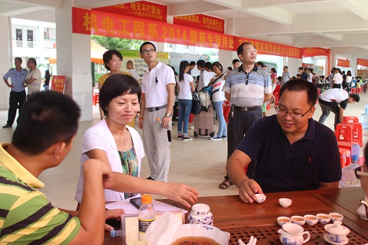来到旅游管理系的注册报到处,一缕茶香扑面而来。抬头望去,一女子着一身旗袍安静淡然,手持杯盏宛然间一杯香茗就已然至于宾客眼前。恰似拣茶为款同心友,筑室因藏善本书。这是我系为新生及家长准备的茶水休息区,既可以缓解旅途的劳累同时也能进一步了解我系茶艺这门课程。不仅如此我系在报到处还配有家长休息区同时提供饮品,休息闲暇之余还能通过观看我系播放的活动影片来增加对本系的了解。如果你对自己的所学专业还不甚了解您还可以去到我系报到处的专业咨询处,我们的专业导师会为您答疑解惑,帮助您更好的了解我们的专业。